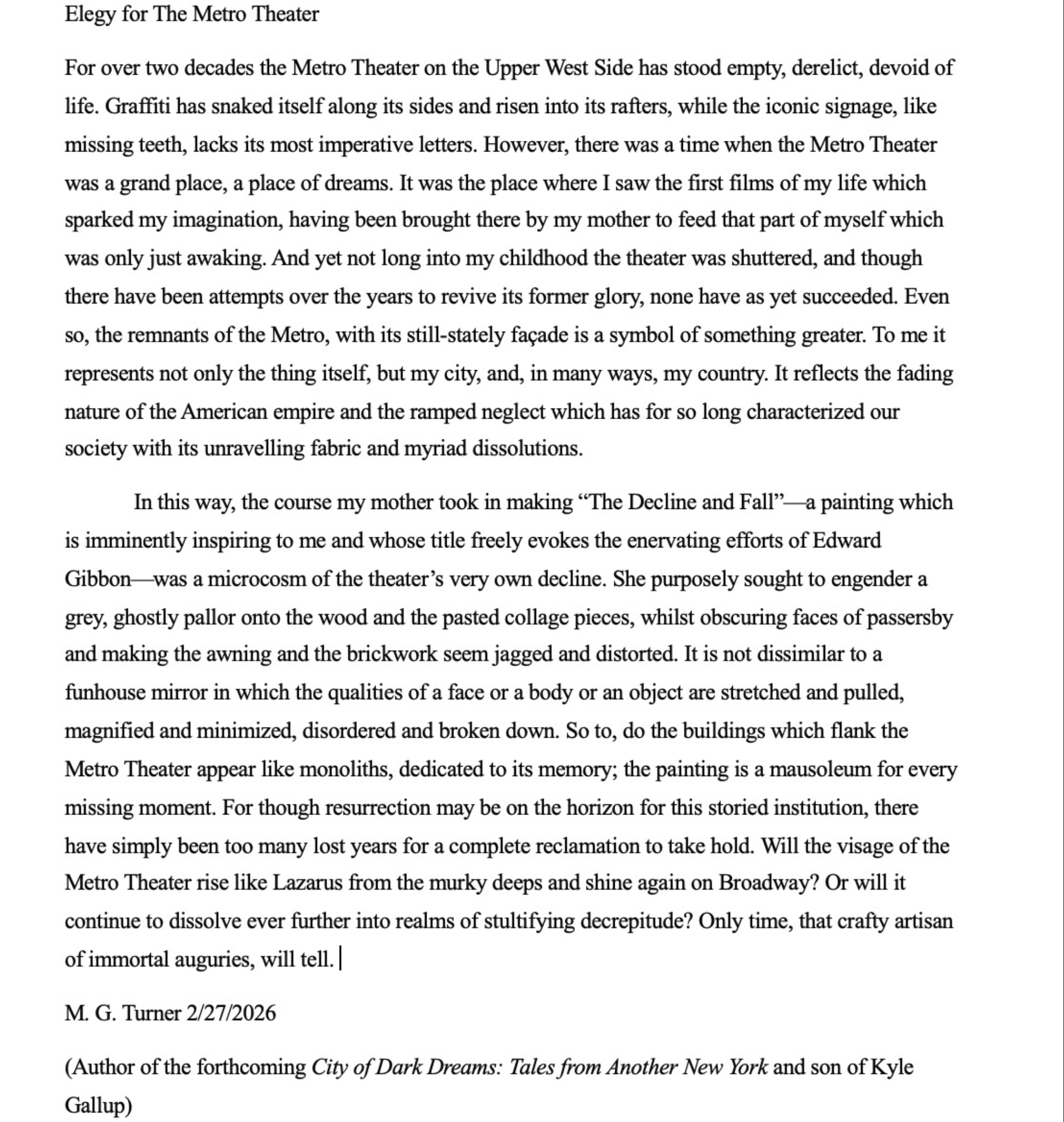 Those are words I will remember as I go forth contemplating a lifetime of theater experiences I have enjoyed.