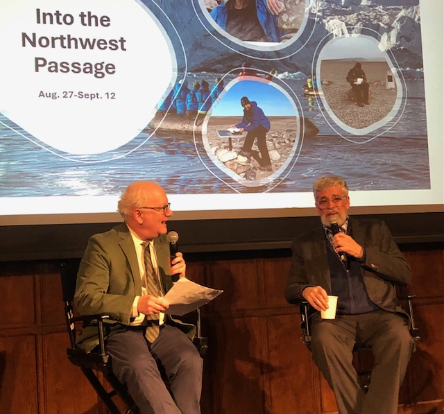 Last Thursday, the night of our discussion finally arrived. I was glad to be joined by my wife, artist Kyle Gallup, and my adult son Ewan Turner, who operates Philip Turner Book Productions with me; he is a creative writer publishing under the pen name M.G. Turner. After a friendly reception in the historic rooms of The Explorer’s Club, Ken McGoogan pulled on the rope that sounds the Club’s bell, calling the meeting to order, and an audience of what looked to be about seventy-five people took seats in the main hall. Following an introduction by Cedar Swan, the CEO of Adventure Canada, Ken gave a talk outlining his long association with the Franklin saga, going all the way back to the writing of Fatal Passage. Using slides, he described how Margaret Atwood had introduced him to Swan’s father Matthew, the founder of Adventure Canada; the many voyages he’s made with them over the past twenty years; how Franklin’s candidacy to lead the search for the Northwest Passage had been championed to the Royal Navy by Lady Franklin, even though his earlier expeditions had produced less than stellar results; John Rae’s discovery of Franklin’s fate; and the medical and dietary travails that he now believes led to the demise of so many of Franklin’s men. When he finished his presentation, it was time for our discussion.