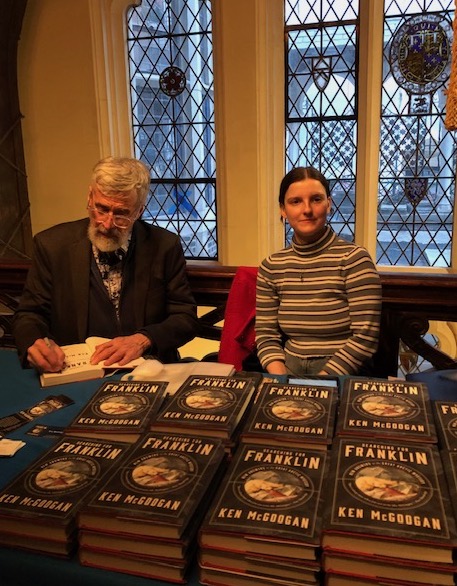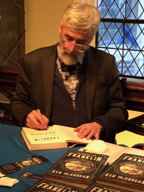 - Ken, signing a copy of “Searching for Franklin.”