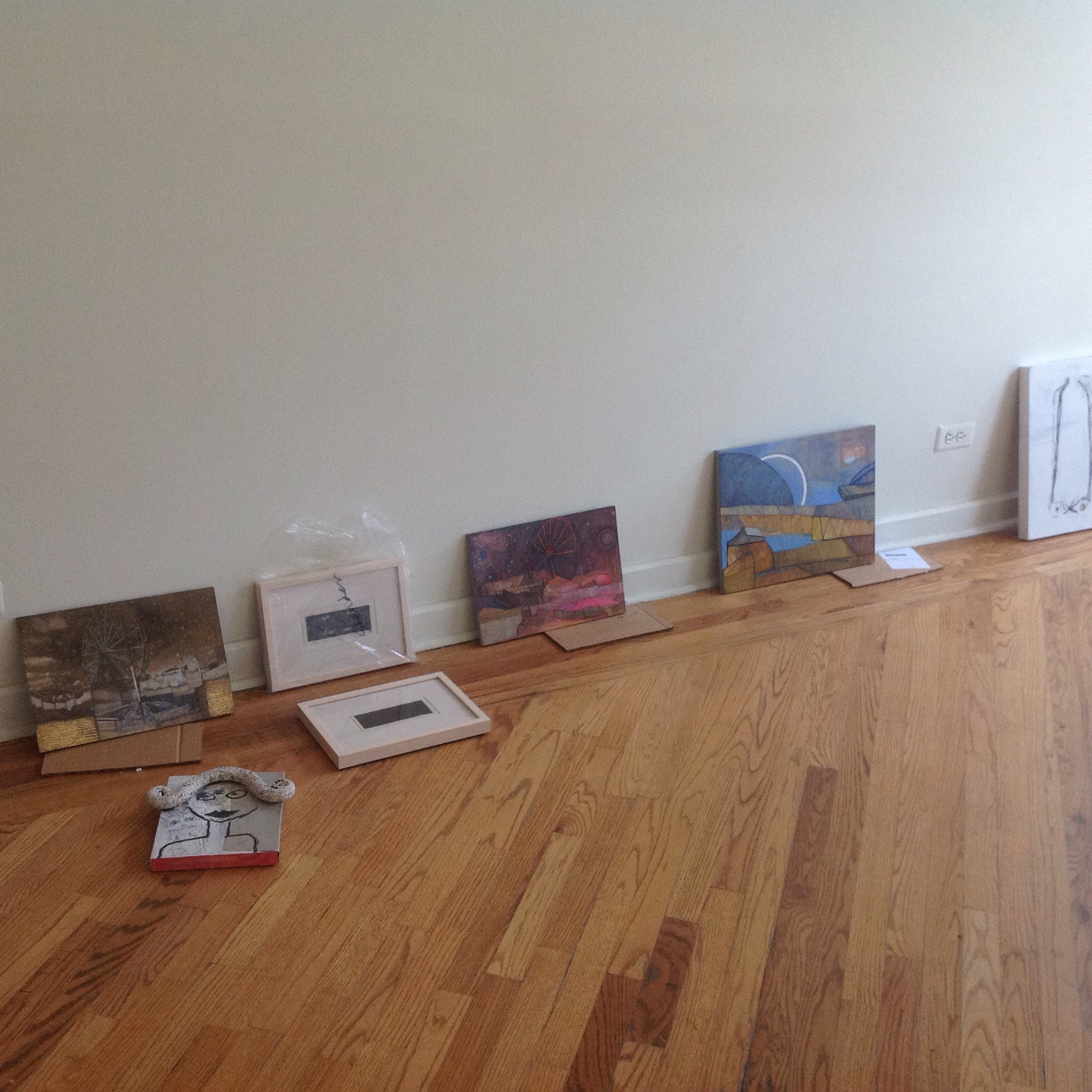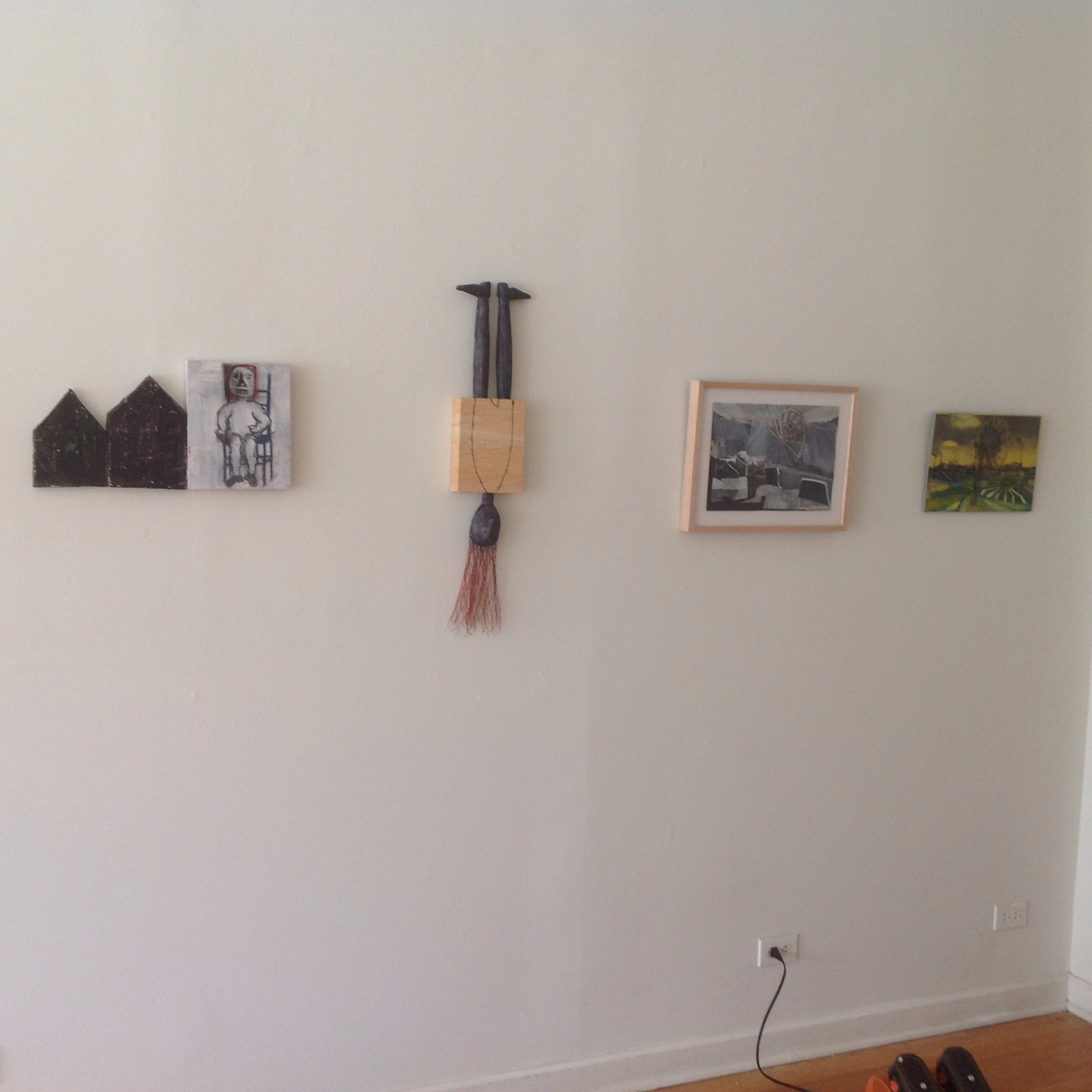 Photos of Installation Day at Firecat Proects. Opening night for “Money, Wheels and Random Legs”—with work by artists Oriane Stender, Kyle Gallup and Melissa Stern—Friday Sept 25, 7-10pm, Firecat Projects, 2124 N Damen Street.