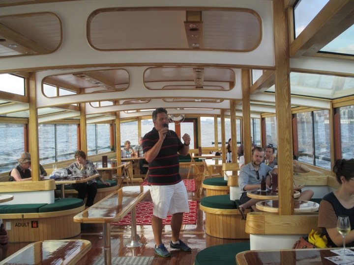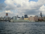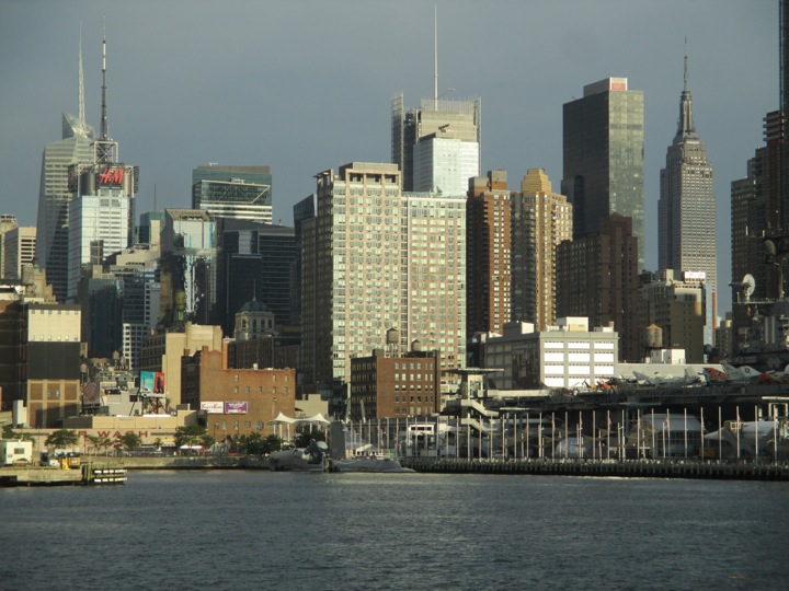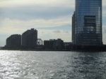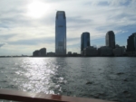 My sister Pamela and her good friend Billy visited NY the past couple days, and last evening she took us on a Classic Harbor Line cruise in NY harbor with an AIA-certified guide, Scott Cook, who spoke very knowledgeably about NY buildings and the Manhattan, Brooklyn, and NJ waterfronts. It was far superior to NY’s more well-known and trafficked Circle Line! The docent Cook, one of six architecture professionals who work these cruises for Classic Harbor, was very good, a fluent speaker, quick to deliver interesting information on individual buildings, their locations, the architects responsible for them, and details of their design and especially their ‘green’ features. He described NY’s waterfront as our “sixth borough,” an idea that really appeals to me, and he broached urban issues, from climate change to how the Hudson River Park and Brooklyn Bridge Park are permitting high-rise development in exchange for resources for upkeep of these newly created public spaces.